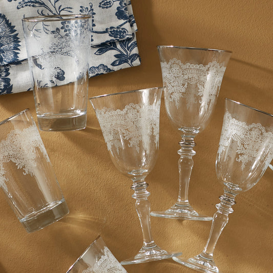 Elegant Lace Platinum-Rim 25 Pcs Glass & Jug Set